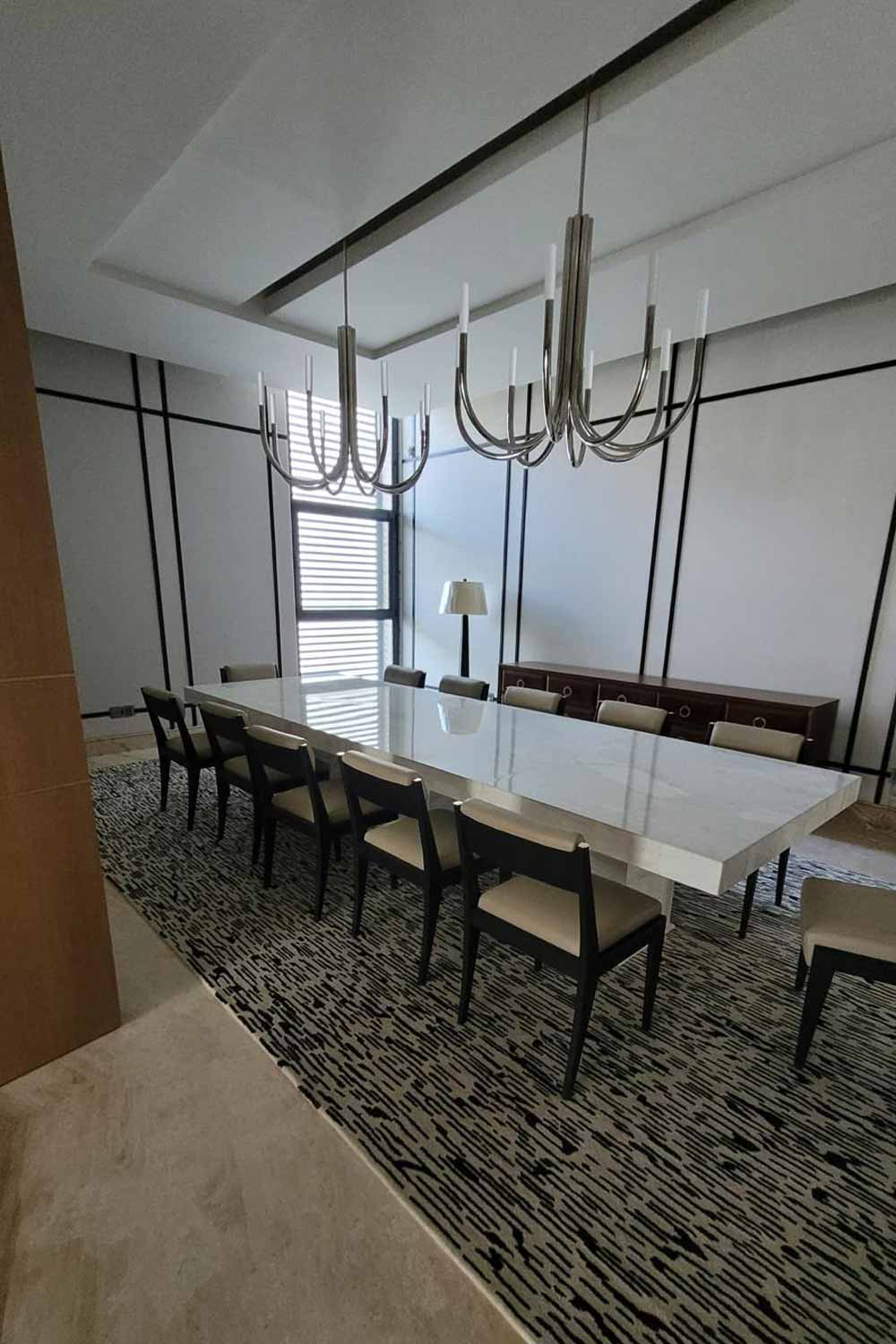 Desarrollo de mobiliario para interior realizado a medida, zona de hall, salas de estar, salones y comedor principal.