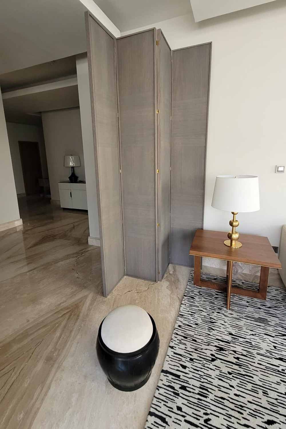 Panelado para separación de ambientes con aparador y mueble tv.